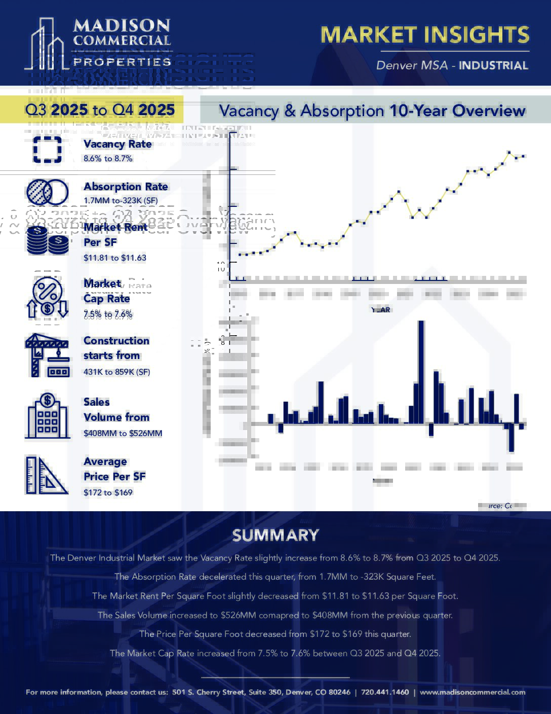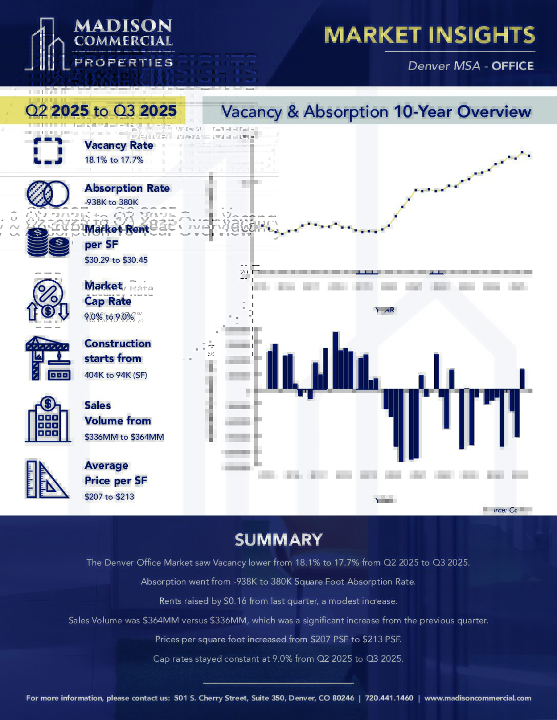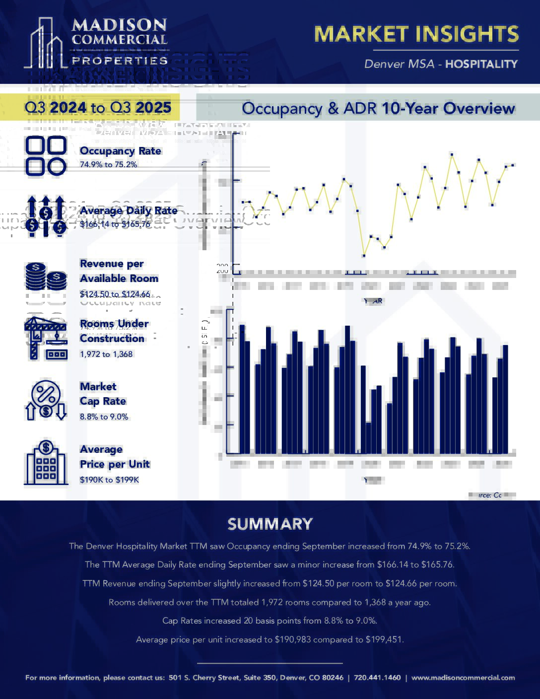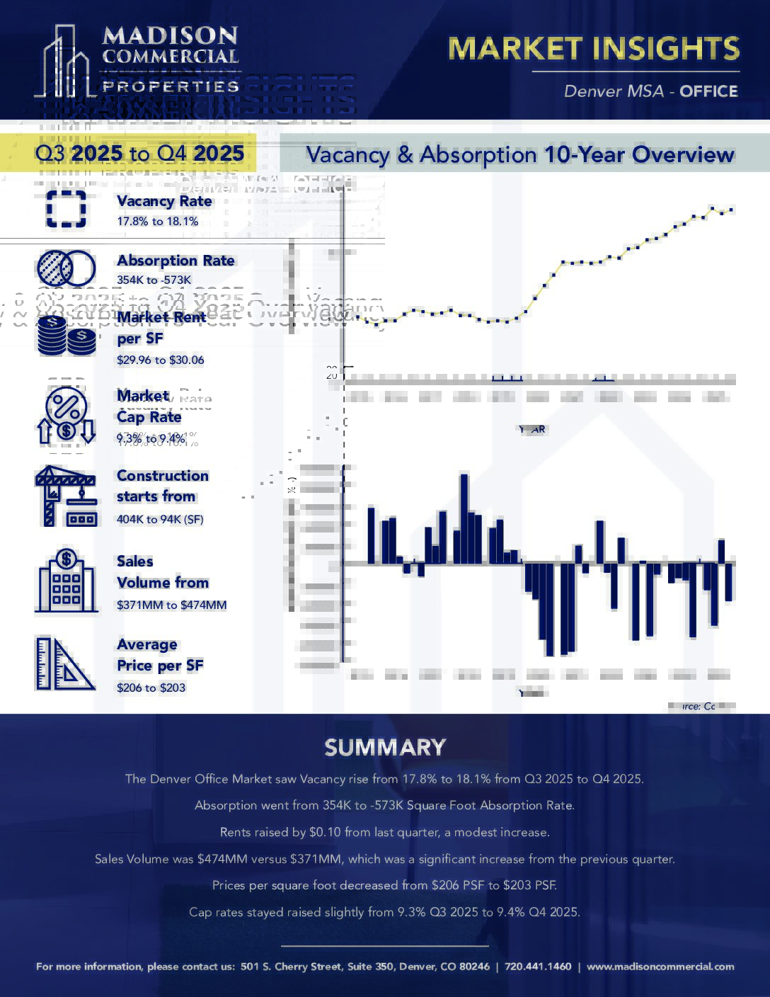 These reports detail quarterly metrics and key points of interest for the Office, Retail, Industrial, Multifamily, and Hospitality sectors of the commercial real estate market in the Denver MSA.