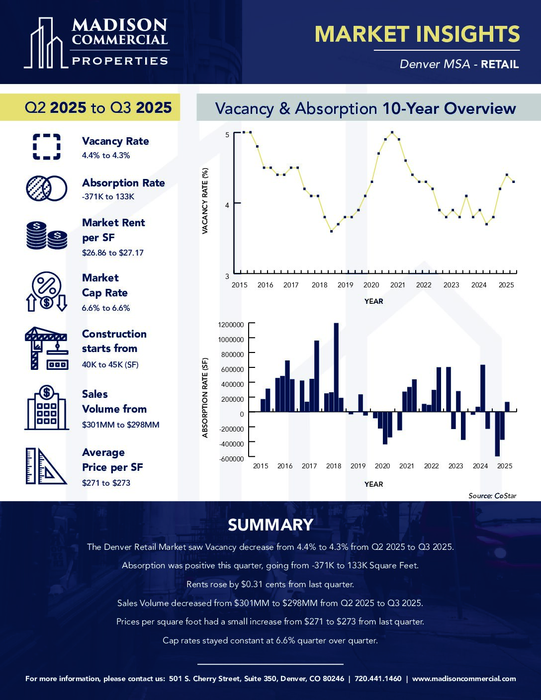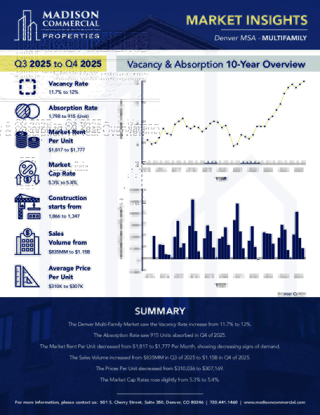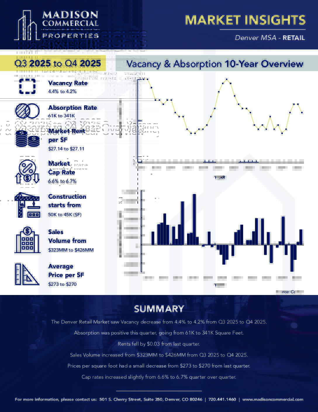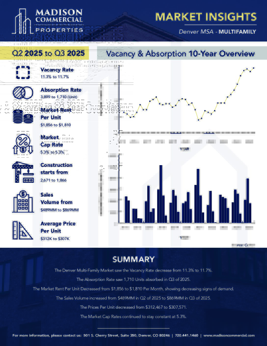 These reports detail quarterly metrics and key points of interest for the Office, Retail, Industrial, Multifamily, and Hospitality sectors of the commercial real estate market in the Denver MSA.